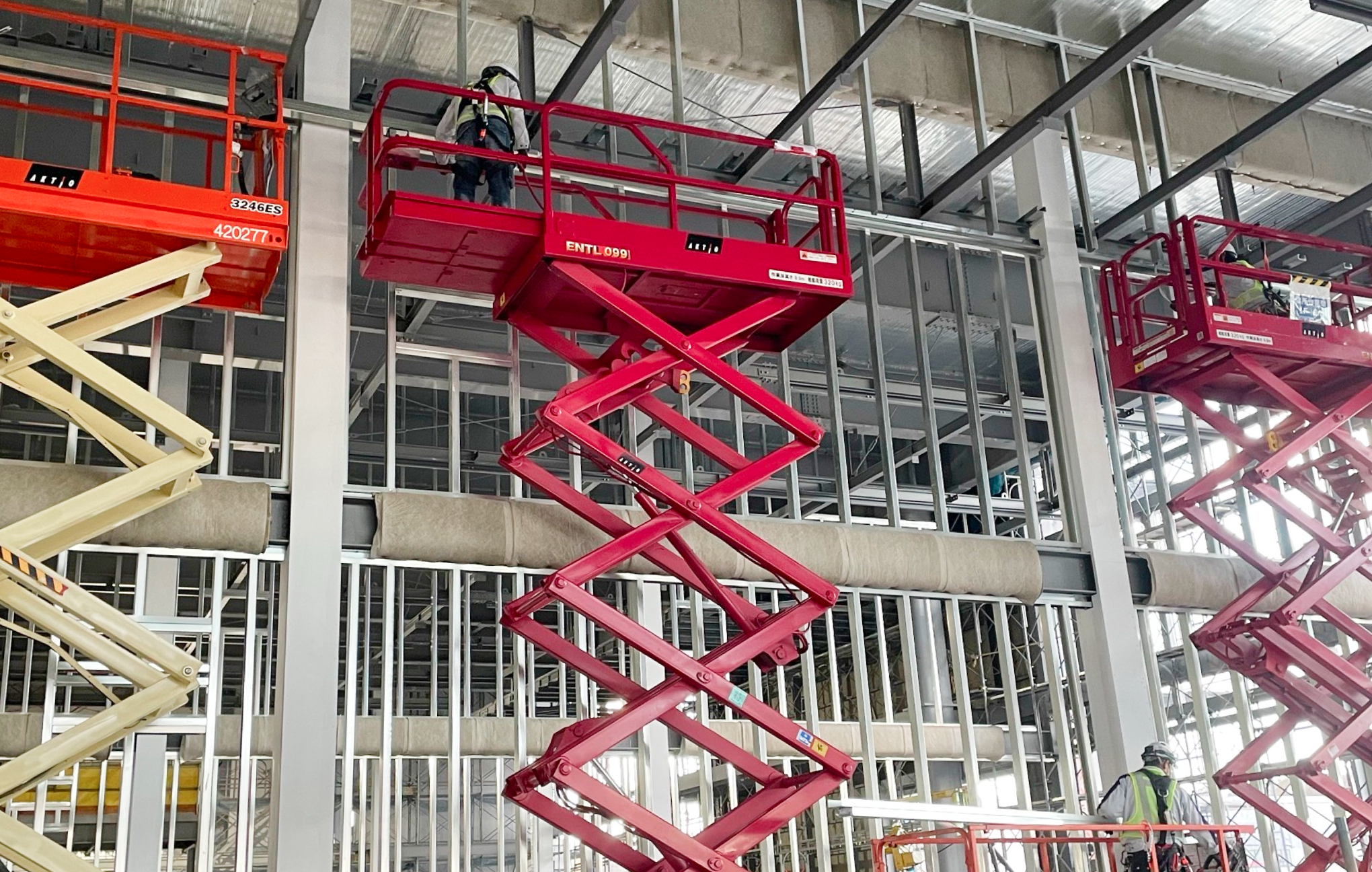 建物の壁や天井の下地をつくる工事です。