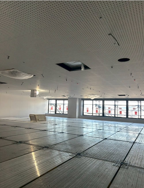 大型現場(学校の天井下地、ボード施工工事完了です。