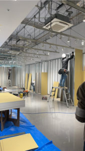 梅田のオフィスビルでLGS施工、天板取り付けしました。